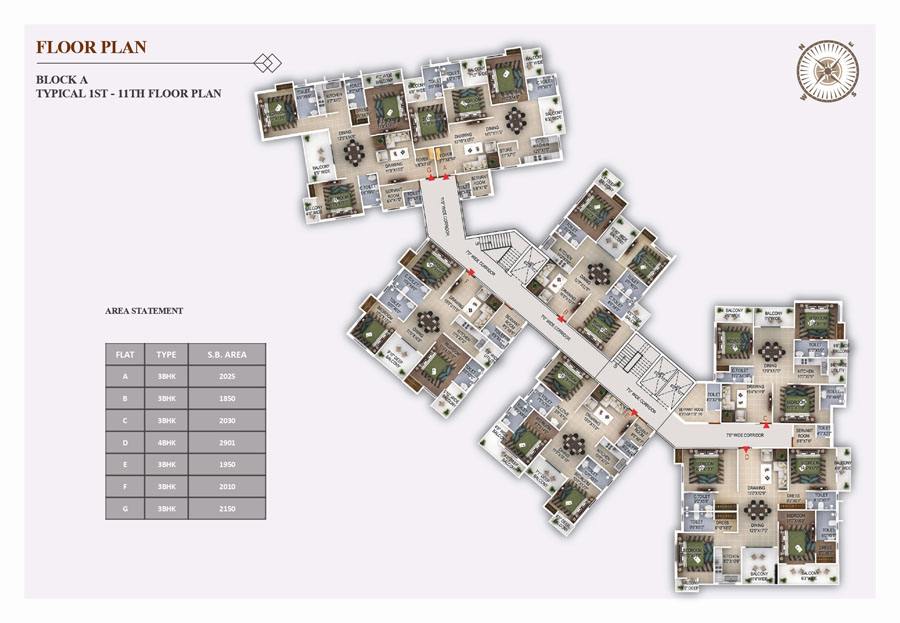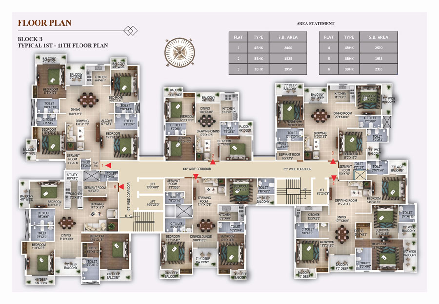 LIFT : Three number of high speed lifts in each block.